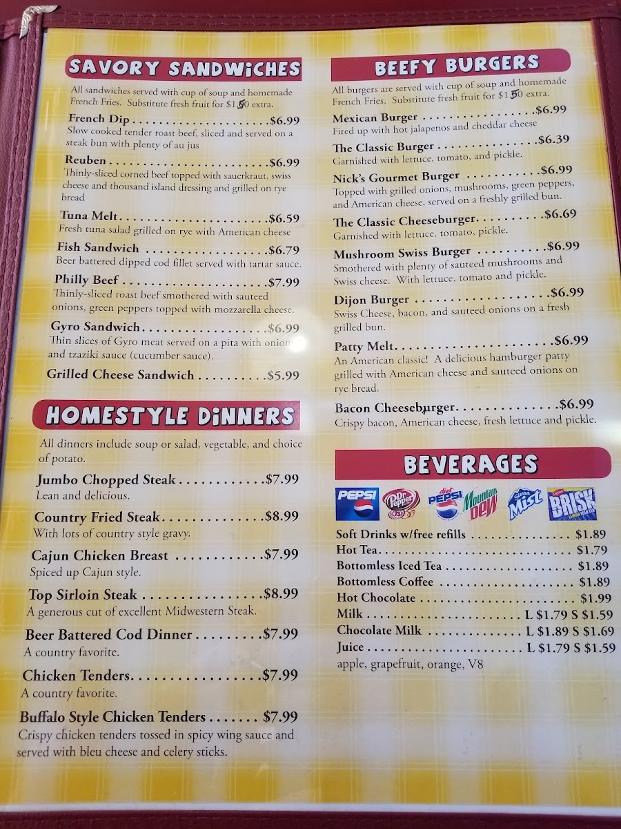 Choose from cherry pepsi, lemonade, pepsi, diet pepsi, mountain dew, sierra mist, dr. pepper, brisk raspberry.