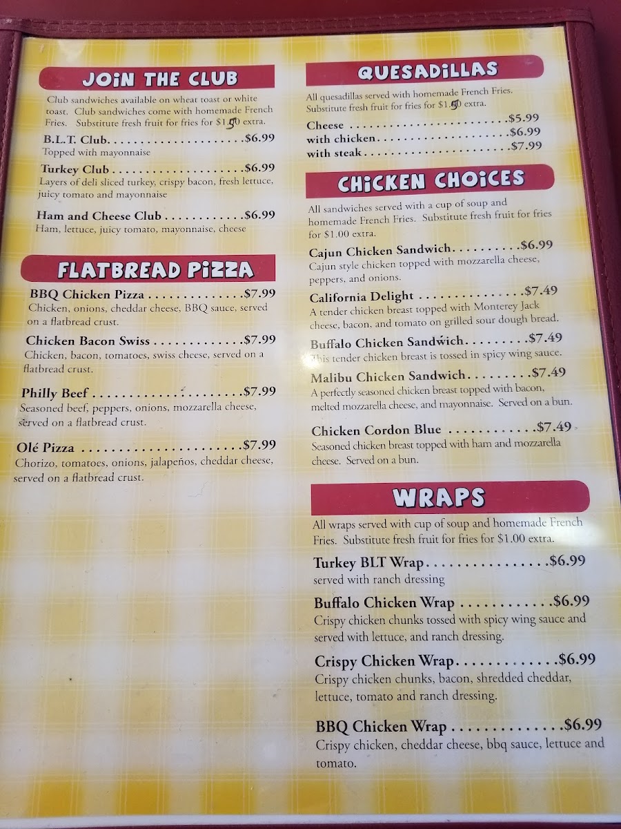 Lettuce tomato avocado cucumber and swiss cheese. Served fries and soup.